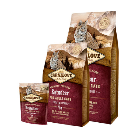 Pełnoporcjowa karma Carnilove Cat Reindeer Energy & Outdoor jest odpowiednia dla dorosłych kotów wychodzących na zewnątrz. Nie zawiera zbóż, ani ziemniaków. Owoce leśne, warzywa i zioła są naturalnym źródłem ważnych witamin, przeciwutleniaczy i innych niezbędnych składników odżywczych.