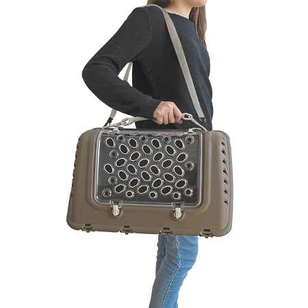 Cztery kolory, przezroczyste drzwiczki z podwójnymi otworami, wygodny pasek na ramię i ciekawy kształt sprawiają, że ten transporter stanowi modny dodatek podczas każdej wycieczki, aby zabrać naszego małego przyjaciela w dowolne miejsce!
