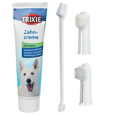 Zestaw do czyszczenia zębów zawiera wszystkie najpotrzebniejsze produkty niezbędne do prawidłowej i skutecznej pielęgnacji uzębienia psa. Przeznaczony do pełnej opieki dentystycznej dla psów.