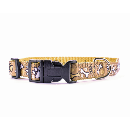 Obroża dla psa z wytrzymałej taśmy nylonowej z motywem łapek i kostek. Idealnie komponuje się ze smyczą z tej samej serii.