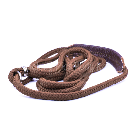 Profesjonalna smycz ringowa niezbędna na wystawach. Wytrzymała linka ze skórzaną wstawką pod gardłem dla większej wygody psa.