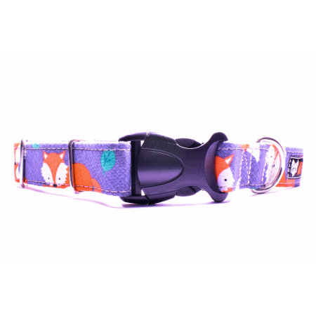 Efektowna obroża dla psa z lisim motywem. Klamry zatrzaskowe zostały wykonane z mocnego, grubego materiału, dzięki czemu nadają się również dla silnych psiaków.