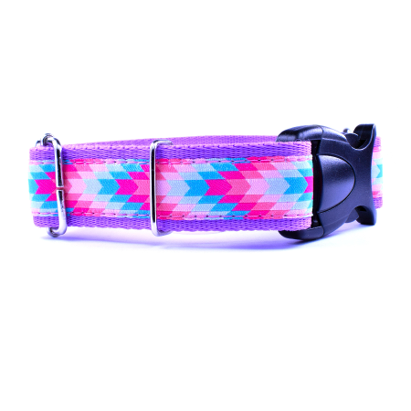Efektowna obroża dla psa z kolorowym motywem. Klamra zatrzaskowa została wykonane z mocnego, grubego materiału, dzięki czemu nadaje się również dla silnych psiaków.
