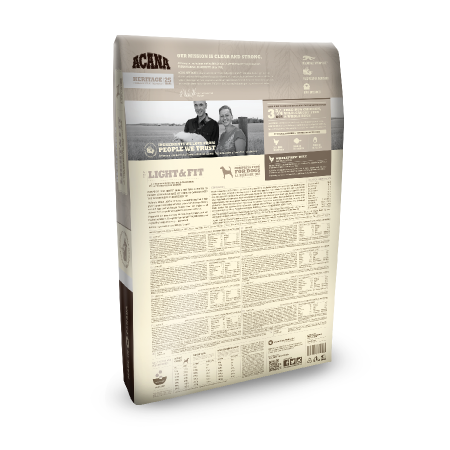 Acana Light & Fit dedykowana jest dorosłym psom powyżej 1 roku życia. Dla psów z nadwagą korzystna jest dieta bogata w białko, aby wesprzeć masę mięśniową, lecz o ograniczonej zawartości węglowodanów, których nadmiar może przyczynić się do powstawania nadmiaru tkanki tłuszczowej. Dlatego Acana Light & Fit jest przepełniona mięsem.