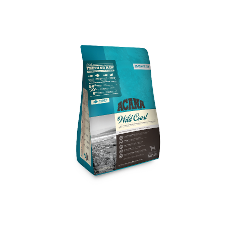 Acana Wild Coast to biologicznie odpowiednia karma pełna świeżych regionalnych składników. Zawiera ryby łowione w naturalnym środowisku: śledzia, flądrę i morszczuka w odżywczych proporcjach WholePrey™ (świeże mięso, organy, chrząstki), które odzwierciedlają naturalną dietę, aby dostarczyć wszystkie odżywcze składniki, których potrzebuje pies do prawidłowego rozwoju.