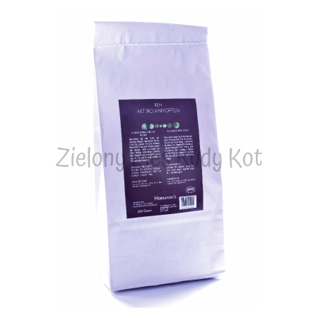 Sucha karma Herrmanns jest przygotowywana niczym musli. Wszystkie składniki są starannie suszone ciepłym powietrzem, dzięki czemu zachowują swoje wartości odżywcze i wyjątkowe walory smakowe. Na koniec dodawane są sproszkowane skorupki ekologicznych jaj, czyli naturalne źródło wapnia. Zawiera dziczyznę, odłowioną w naturalnym środowisku, ziemniaki, warzywa i owoce z ekologicznych upraw. Mięso jelenia jest wolne od alergenów, bogate w białko, może być stosowane w dietach wykluczających, dzięki czemu stanowi idealne rozwiązanie dla psów cierpiących na alergie.