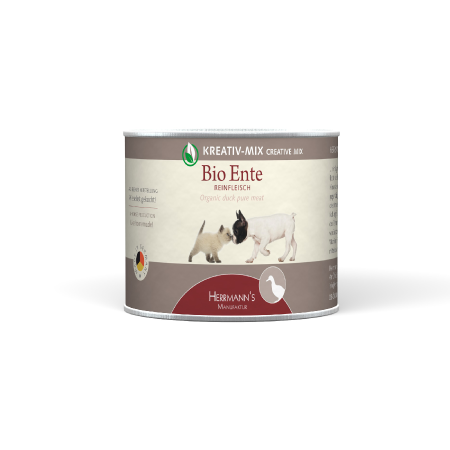 Herrmanns Pure zawiera 100% mięsa, w przypadku drobiu zawsze składa się z piersi, szyi i podrobów, gotowanych we własnym sosie. Mięso drobiowe jest lekkostrawne i ma ograniczoną zawartość tłuszczu, dzięki czemu nadaje się także dla zwierząt z nadwagą i starszych. Karma może stanowić alternatywę dla surowego mięsa. Uzupełnienie diety w owoce i warzywa znajdziesz w innych propozycjach Herrmanns - w płatkach warzywnych lub kociołku warzywnym. Oczywiście możesz dodawać własnoręcznie przyrządzone owoce i warzywa.
