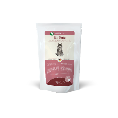 Koty potrzebują jedzenia, które jest do nich odpowiednio dostosowane ale które jest też wolne od jakichkolwiek sztucznych dodatków. Dlatego w karmach Herrmanns znajdziesz tylko naturalne składniki i wyłącznie jedno źródło białka. Posiłki są uzupełnione w cenne ekologiczne oleje, błonnik i odrobinę owoców i warzyw. Rezultatem jest zdrowy i zbilansowany posiłek. Herrmanns Cats Ekologiczna kaczka zawiera 96% mięsa kaczki, ziemniaki oraz suszonego banana z ekologicznych upraw.