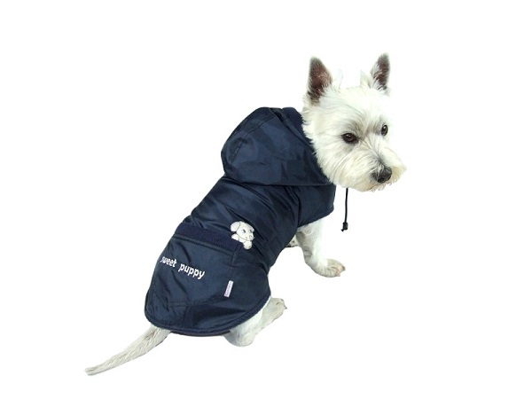 Bardzo wygodne ubranko z kapturem, łatwo i szybko zakłada się na pieska. Wykonane z nieprzemakalnego ortalionu, doskonale chroni przed zimnem, wiatrem i deszczem. Na plecach widnieje ozdobna kieszonka z aplikacją. Płaszczyk od spodu podszyty mięciutkim polarem, zapinany pod brzuszkiem i pod szyją na regulowane rzepy.