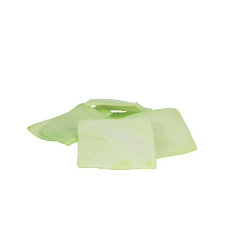 Paski ze spiruliną do żucia to przysmak z suszonej skóry naturalnej, odpowiedni dla wszystkich psów w każdym wieku, mniejszy rozmiar idealnie nadaje się dla psów małych ras. Stanowi doskonałą niskotłuszczową przekąskę pomiędzy posiłkami, a dodatkowo zawiera wartościową spirulinę, bogatą w składniki odżywcze i substancje aktywne wspierające układ odpornościowy. Zaspokaja instynkt gryzienia, a poprzez żucie wzmacnia zęby i dziąsła oraz wspomaga higienę uzębienia.